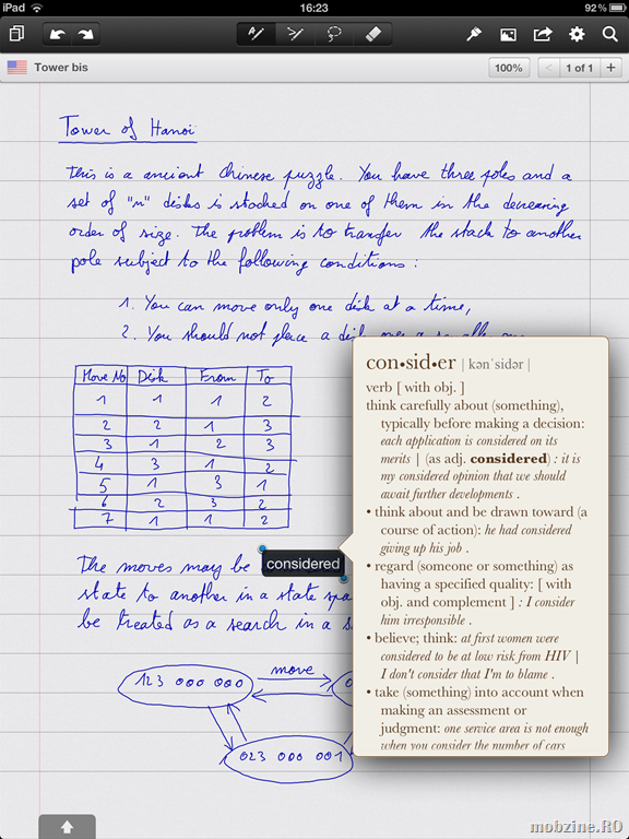 MyScript Notes Mobile poate fi descărcat de aici. Pentru 8 USD primiți pe iPad (iOS) o funcționalitate similară cu cea de pe Galaxy Note!