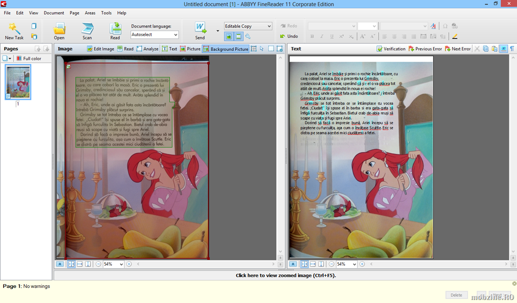 Când ați terminat analiza, aveți documentul dorit. De multe ori aproape identic cu cel original – aici e de fapt unul din atu-urile suitei ABBYY FineReader 11: are rate foarte bune de recunoaștere a textului pe limba română.