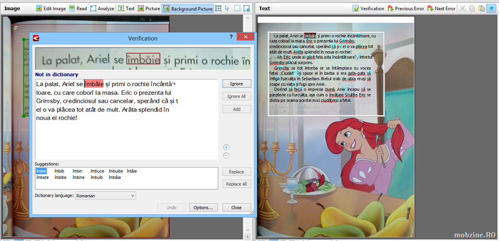 Aceste mici ajustări se pot face indiferent de tipul de document către care ați ales să faceți exportul. Uneori merită – în cazul de față aveam nevoie de inserarea imaginii de fundal, alteori nu e cazul – trebuie extras doar textul. Utilizatorul decide ce e mai important pentru el.
