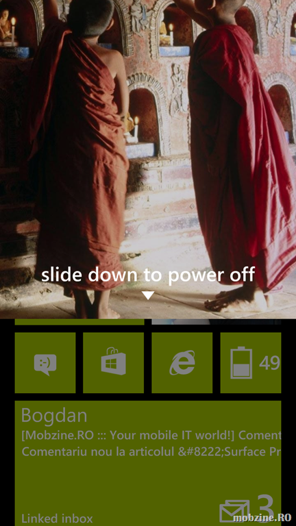 Sistemul de operare Windows Phone poate lucra cu trei niveluri standard de luminozitate, diferențele între ele fiind semnificative atât în ceea ce înseamnă consumul cât și calitatea imaginii afișate. Pe 8X merită să fie folosite culori deschise pentru că experiența de folosire e mult mai plăcută.