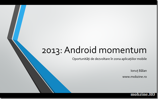 Pe 16 mai, la Howard Johnson am fost moderator și speaker în secțiunea Mobile Apps Meetup din cadrul Mobile Conference 2013. În această calitate am vorbit despre momentul Android 2013 și oportunități de dezvoltare în zona de aplicații mobile.