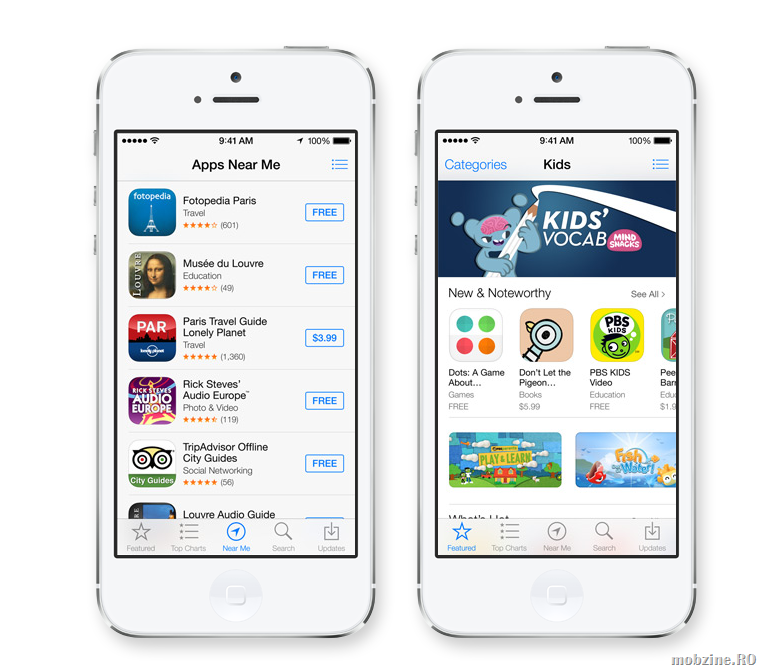 Orice schimbare în sistemul de operare se reflectă și la nivelul App Store. O funcție utilă este cea prin care se pot vedea aplicațiile populare în zona în care se găsește utilizatorul, o implementare interesantă a colecției de date preluate de la senzorii de localizare.![]()