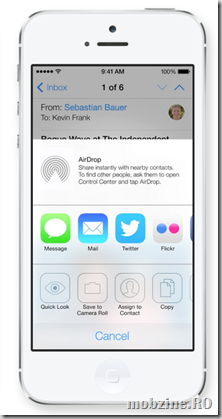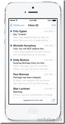 Aplicația Mail și-a păstrat în mare funcționalitatea și a primit la rândul ei design-ul nou, al iOS 7.