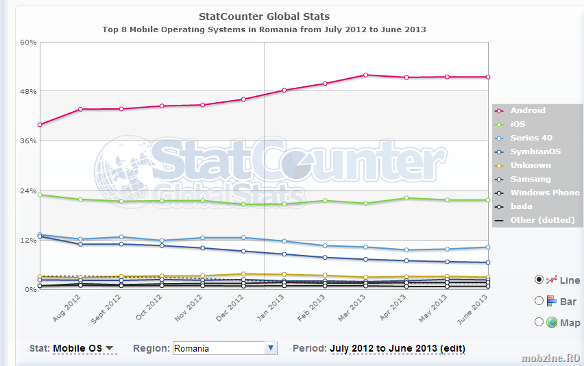 StatCounter a realizat un raport denumit ”Internet Wars” în care face o analiză a perioadei august 2012 – iunie 2013 în ceea ce înseamnă cotele de piață pentru browser-e, sisteme de operare, motoare de căutare, brand-uri de smartphone-uri etc.