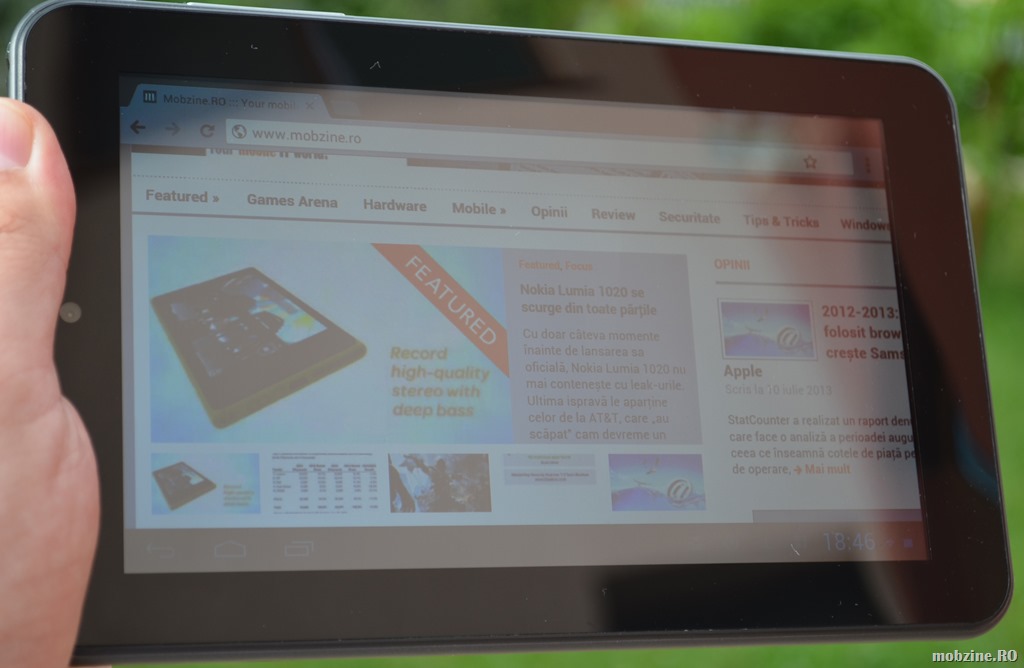 Pot să spun că display-ul lui Evotab HD, deși nu excelează, e unul suficient de bun pentru majoritatea cazurilor în care se va folosi tableta. Mai ales că nu sunt probleme în manevrarea touch.