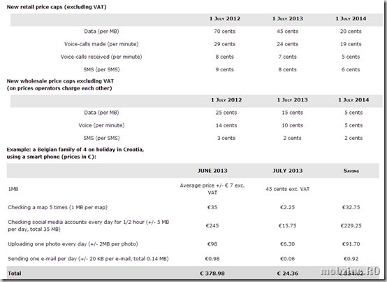 Cel mai tare se simte la traficul de date: de la 0,7 EUR / MB se ajunge la 0,45 EUR /MB în 2013 pentru ca în 2014 să fie 0,2 EUR/MB.