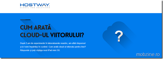 Hostway invită la concurs persoanele cu imaginație: cum o să arate cloud-ul viitorului? Știți răspunsul la întrebarea asta, atunci puteți intra în concursul pornit de Hostway. Concursul e tentant, pentru că oferă loc pentru idei interesante în schimbul unui iPad mini 3G.