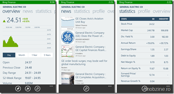 Bing Finance aduce pe Windows Phone informațiile legate de valoarea acțiunilor la bursă.