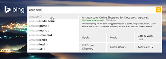 Bing.com este integrat şi în Windows 8.1, căutările generale fiind realizate exclusiv pe bing.com. Leak-uri recente arată că platforma se extinde şi spre un model de AI gen Siri, proiectul Cortana fiind legat direct de bing.com.