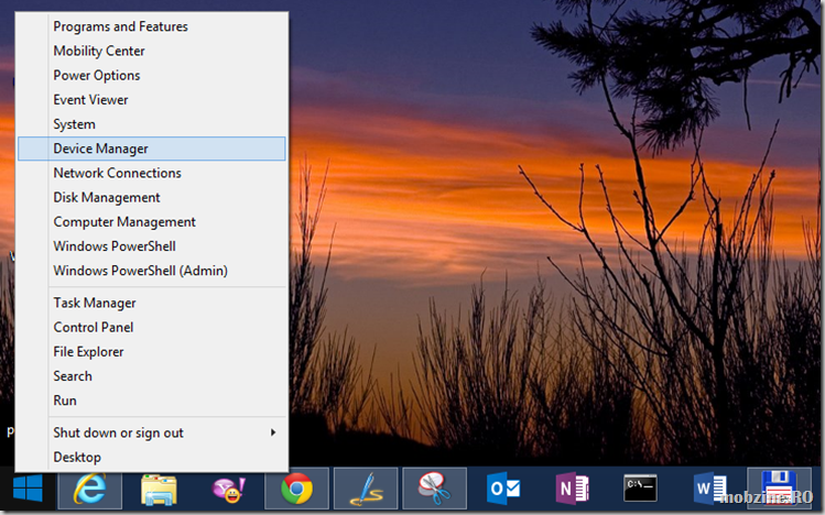 Butonul START, redesenat pentru Windows 8.1 apare permanent dacă mausul e dus în partea din stânga jos a ecranului de lucru. Clic dreapta pe el și este afișat un meniu contextual din care se poate alege un shortcut către o listă a celor mai interesante/folosite opțiuni.