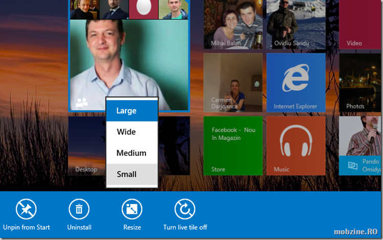 Pe Windows 8.1 apar două noi dimensiuni pentru Live Tile-uri: cel mare și cel mic în completarea opțiunii Wide și Medium.
