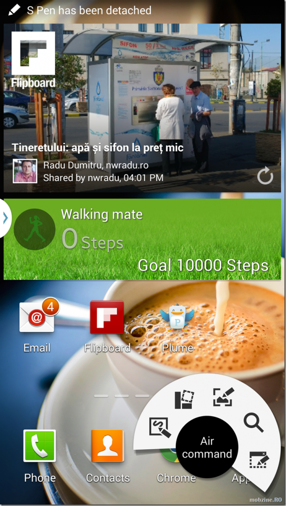 E în mod clar o chestiune de preferință și de … obișnuință. În continuare spun că phablet-urile sunt niște palete de ping-pong, dar niște palete utile. Începe să îmi placă ideea de a folosi un aparat de dimensiunea lui Galaxy Note 3 pentru că îți permite să faci multe chestii într-un mod mai facil decât modele cu display-uri de dimensiuni mai mici. 5,7 inci într-un corp de 151.2 x 79.2 x 8.3 mm și o greutate de 168g încep să fie chiar foarte ok. Ecranul mare îți permite să vezi mai clar informația și să o manipulezi mai ușor. Poți citi fără probleme știrile (integrarea Flipboard e de bun augur), compune și citi email-uri, browsing și chiar să te uiți la filme într-o calitate decentă.