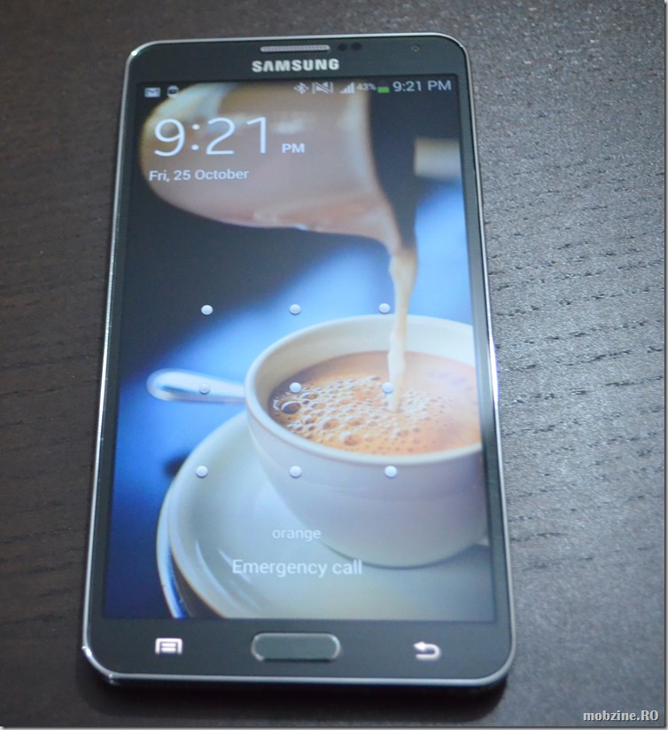 Ecranul Super AMOLED cu rezoluție de 1080 x 1920 pixeli face din Galaxy Note 3 un excepțional aparat pentru citit și redat poze/filme. E o plăcere să te uiți la ecran și să îl foloseși. Că veni vorba, controlul touch merge ireproșabil. Ecranul ocupă aproape toată partea din față a phablet-ului (tot îmi vine să spun telefon), marginile fiind foarte înguste (se vede în poza de mai sus). O densitate de 386 ppi pe Super AMOLED-ului de pe Galaxy Note 3 sunt o combinație ideală – se poate și mai bine, sunt convins de asta.