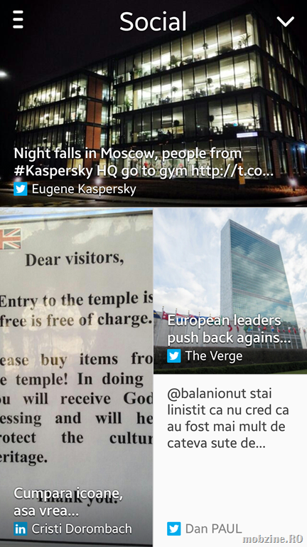 Setul de informații apare pe ecran atunci când se face swype de jos în sus – dacă vreți să folosiți și Google Now va fi cam complicat atâta vreme cât aveți activă setarea cu Flipboard.