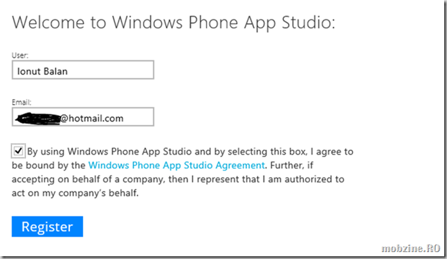 1. inregistrarea in Windows Phone App Studio – am facut0o in urma cu 3 cca. saptamani :-);