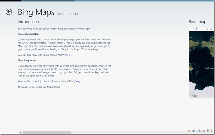 De exemplu. Bing Maps. Cum poate fi folosită opțiunea într-o aplicație Windows 8?