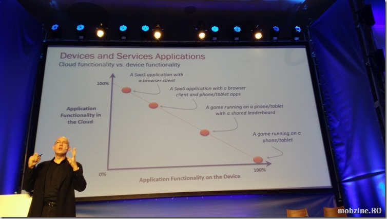 Spre finalul zilei David Chappell a mai vorbit încă o dată despre cloud: ”The Microsoft Cloud: A Big-Picture View”. Am stat puțin la prezentarea lui, plină de energie ca de obicei. A trebuit să fug să văd și ”Painless Cross Platform Mobile App Development and Deployment” susținută de Andrei Marinescu, Co-founder and CTO la Appscend. O sală arhiplină cu o prezentare interesantă: despre un framework românesc de creare a aplicațiilor web. După un studiu despre Romania’s got talent în care am aflat printre altele că serviciul făcut cu framework-ul Appscend a ținut la încărcare de 180000 de accesări pe minut.