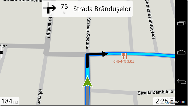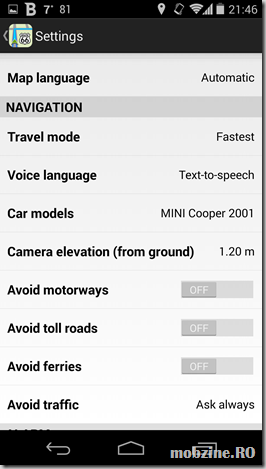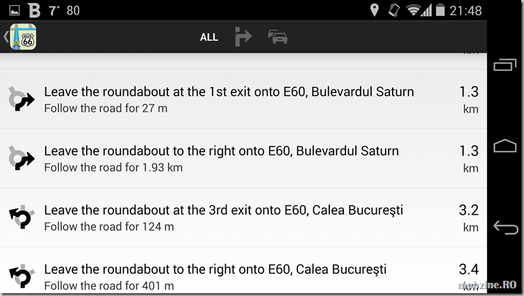 Pe Nexus 5 Navigate 6 se mișcă destul de bine. Observ că interfața e mai aerisită față de ceea ce cunoșteam de la versiunile anterioare ale aplicației Route 66. Și ceva mai simplu de înțeles și folosit.