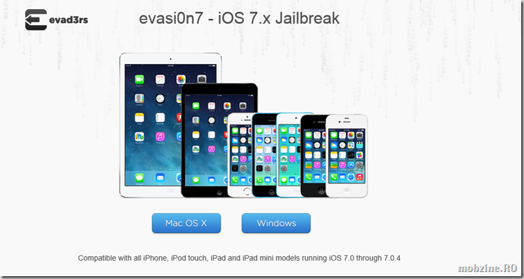 Așa, ca să le facă o bucurie de sărbători fanilor ce așteptau asta cam de multișor, echipa Evad3rs a lansat pachetul de jailbreak untethered pentru Windows și Mac OS. Evasi0n7 se numește, iar vestea cu adevărat foarte bună este că funcționează pe toate modelele de iPhone, iPod touch, iPad și iPad mini ce rulează iOS 7 (de la 7.0 până la 7.0,4). Ați sesizat că am zis TOATE modele, da? Inclusiv astea din 2013, adică iPad Air, iPhone 5s și iPhone 5c.
