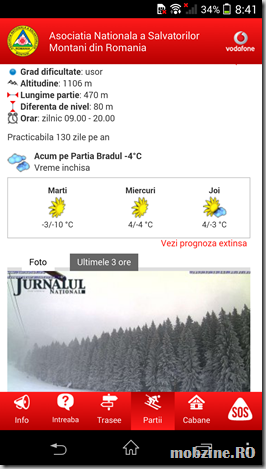 Aplicația Salvamont din Android oferă acum mai multe informații pentru pasionații de schi din România. De la starea pârtiilor, la condițiile meteo și imagini live, toate vin automat în interfața Salvamont, direct pe smartphone. 130 de pârtii din țară sunt listate în aplicație – în momentul de față nu pot confirma cât de valide sunt informațiile legate de grosimea stratului de zăpadă sau starea instalației de nocturnă.