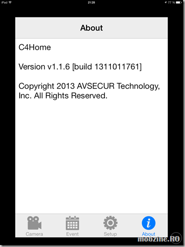 Față de alte modele de acest tip, toată interacțiunea aplicației C4Home cu camera se întâmplă prin cloud. De aici vin și avantaje – se poate accesa de oriunde, de pe orice dispozitiv, dar și un mare dezavantaj: stream-ul video va avea mereu un decalaj iar imaginea afișată va trebui să fie compresată cu unul din algoritmii folosiți în streaming.