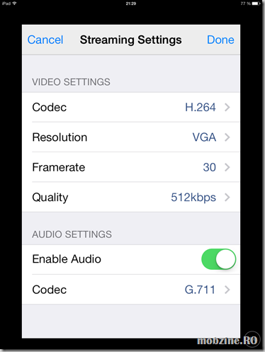 După cum vă spuneam, de pe smartphone sau tabletă se poate accesa stream-ul video de pe cameră. Cu valorile pentru calitatea imaginii setate la maxim, există un decalaj de 1-2 secunde între ceea ce se vede și ceea ce se întâmplă de fapt în fața camerei.