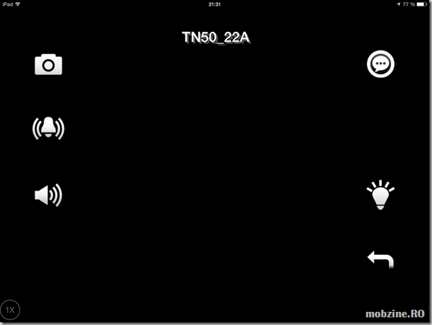 Aplicația C4Home are câteva funcții prezentate peste imaginea preluată de la cameră. Prima este cea prin care se poate face o captură locală a informației de pe ecran. A doua permite redarea unor melodii în difuzorul camerei TN5). Se poate aprinde manual LED-ul – util în condiții de noapte când nu se vede cum trebuie.
