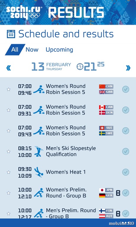 Cu ceva vreme în urmă vă spuneam că există Sochi 2014 Guide, o aplicație care aduce informații interesante pe Windows Phone despre olimpiada de iarnă. Azi vreau să vă spun că există și Sochi 2014 Results (cu o funcționalitate foarte similară), programul cu care se pot obține în timp real informații despre competiție și care poate fi configurat să genereze reminder-e ori de câte ori se întâmplă o anumită probă sau concurează un anumit atlet.