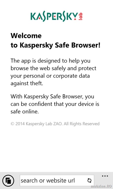 Kaspersky Safe Browser se poate descărca gratuit din Windows Phone Store.