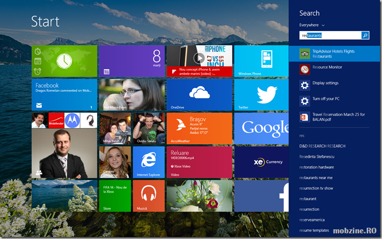 Din nou opțiunea de căutare cu Bing Smart Search, accesibilă din momentul în care începem să scriem ceva în ecranul de start METRO, este extinsă. Acum prezintă și rezultate ale căutării în cadrul Windows Store.