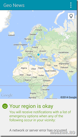 În zona de software Samsung nu se lasă și la fiecare nouă versiune de Galaxy S aduce ceva nou. De data asta avem aplicația pentru citirea pulsului, venită să completeze suita S Health adusă anul trecut. O altă noutate este serviciul de alertă Geo News prin care utilizatorul de Galaxy S5 va primi direct pe ecranului smartphone-ului, în interiorul uni widget, informații despre evenimentele deosebite din jurul locației curente – într-una din zile am primit o alertă de cutremur pentru Grecia.