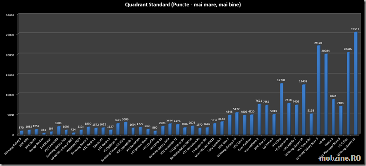 Analiza prin prisma lui Quadrant Standard oferă din nou un nou lider: cel mai rapid este Samsung Galaxy S5, la o diferență semnificativă de următorul clasat, Galaxy Note 3.