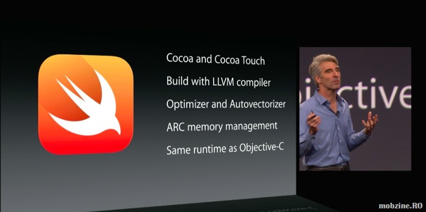 Swift: un nou limbaj de programare ce înlocuiește Objective C. Apple a anunțat că oferă un nou limbaj de programare care să fie mai flexibil și mai puternic decât Objective C. Rapid, modern, sigur, interactiv, Swift ar trebui să ofere dezvoltatorilor mai multă libertate în a crea aplicații mai complexe și mai de calitate. Apropo de aplicații, în App Store sunt peste 1,2 milioane de aplicații disponibile pentru download!