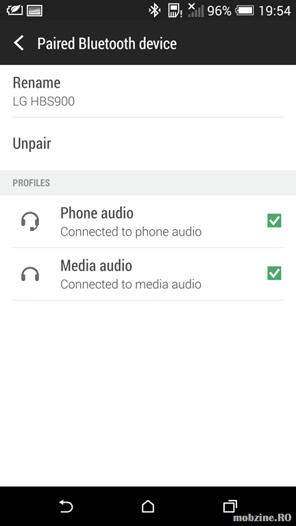 Vă asigurați că lucrurile stau chiar așa intrând în setările de sunet, la playback. Verificați să aveți Headphones și Headset pe LG HBS900 – asta înseamnă că veți putea folosi și microfonul, nu doar partea audio.