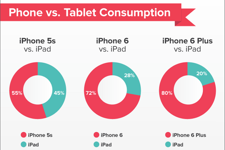 Se pare că, odată cu adoptarea noilor modele de smartphone, iPhone 6 dar mai ales iPhone 6 Plus, utilizatorii acestora care posedau și iPad au migrat tot mai mult înspre folosirea telefonului. Este până la urmă o transpunere a situației generale și la nivel de comunitate fidelă produselor Apple. Cifrele pe care vi le arătăm mai jos sunt posibile urmărind comportamentul utilizatorilor care posedă atât smartphone-ul cât și tableta casei, în anumite aplicații.