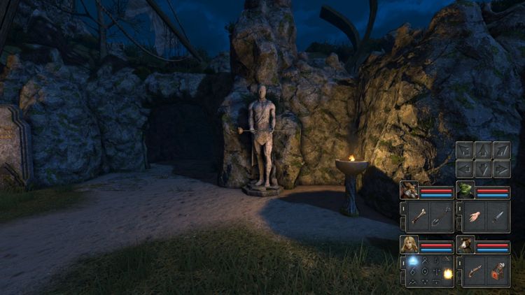 ă începem cu lucrurile ce mai că au rămas neschimbate. Jocul arată predominant la fel acolo unde ai crede că ar avea motiv să arate la fel. Sunt pereți care aș zice că sunt cam aceeași ca acum trei ani, nu că m-ar deranja prea mult, pereți sunt pereți. Dar compensează prin spații exterioare generoase, și partea cea mai importantă, începi dintr-un astfel de spațiu exterior, pe o plajă cu nisip, cu apă, cu țestoase imense, peșteri și în general un decor foarte diferit față de primul Grimrock. Este, la nivel de bază, exact același joc, gâdilat, echilibrat diferit, numai că amplasând primele secțiuni în spații exterioare chiar îl face să pară nou.