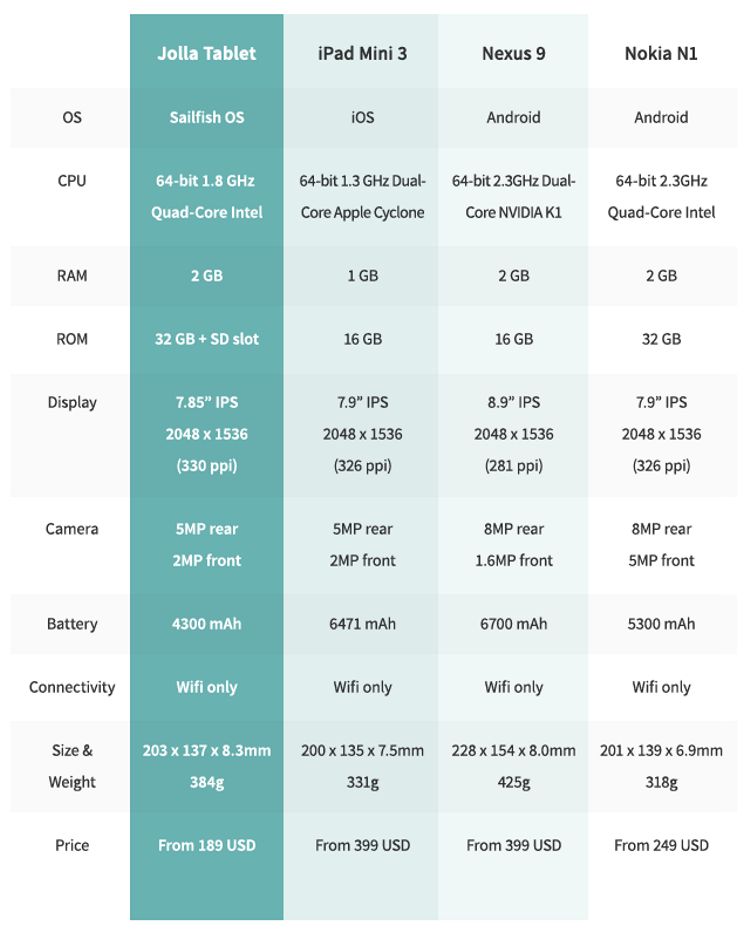 Legat de produsul în sine, prea multe nu sunt de spus, fiind vorba despre un proiect. Din punct de vedere tehnic se remarcă asemănările cu Nokia N1, pe care le puteți vedea într-o comparație interesantă realizată chiar de producători între cele două tablete, la care se adaugă și un iPad și un Nexus.