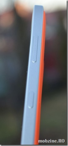 Pe bordura de aluminiu există montate şi butoanele hardware de control pentru volum şi pornire/oprire. Lipseşte cel pentru camera foto – şi când mă gândesc că la lansare Microsoft s-a lăudat mult cu facilitatea de pe Windows Phone de a face poze foarte repede prin simpla apăsare a butonului hardware dedicat camerei foto.