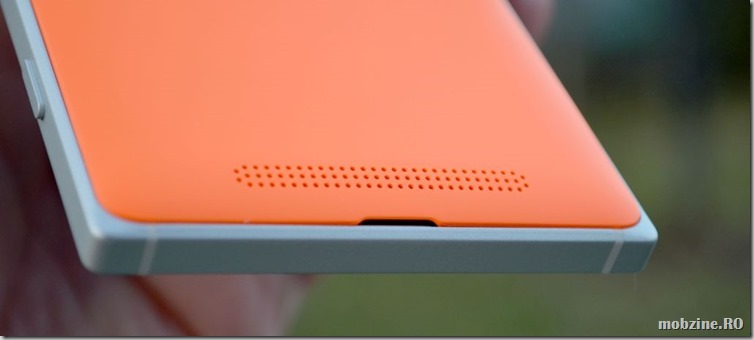 În teste am avut modelul cu spate portocaliu de care chiar m-am atașat pentru că făcea pereche perfectă cu brățara de fitenss Jawbone UP24 – măcar dacă aș fi avut și aplicație Jawbone de Windows Phone ca să mă pot bucura de perechea portocalie.