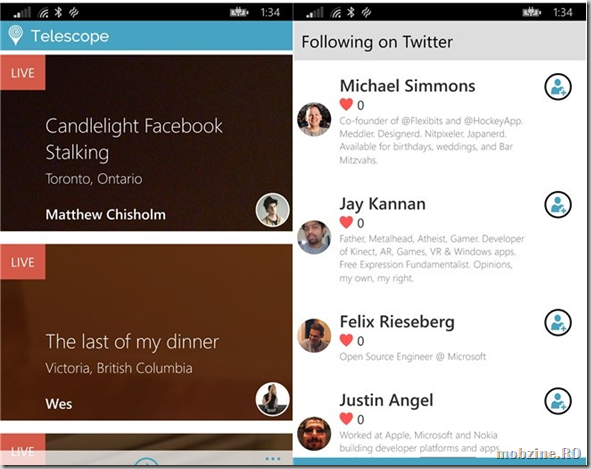 Telescope for Periscope poate fi descărcat din Windows Phone Store urmând link-ul de aici.