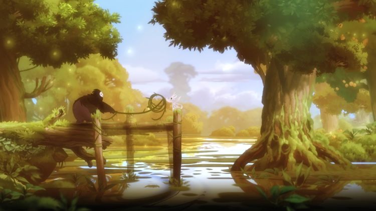 Acesta este un joc de-a dreptul feeric. Trine 2 și titlurile Rayman menționate anterior sunt cam singurele care aș zice că se ridică la același standard de stilizare, calitate vizuală și detaliu, din acest segment. Sigur, în alte genuri ar mai fi Bastion și Transistor, dar mă refer strict la acest gen de jocuri. Este minunat cum nu cred că îi pot face dreptate imaginile alăturate. Mișcările sunt fluide, cadrele sunt pline de viață, lumina se schimbă pentru a reflecta tonul fiecărei scene, tehnologic este solid ca detaliu. Iar stilistic, este adorabil, este întunecat, este ca un desen animat foarte bine făcut, unul care nu își tratează publicul ca o adunătură de copilași ce nu trebuiesc expuși la lucruri întunecate. Îmi amintește în anumite aspecte de opere ca The Secret of Nimh, probabil din cauza bufniței, sau chiar Fantasia, predominant tot din cauza bufniței, una întunecată și masivă, de parcă ar fi Cernobog. E acea combinație frumoasă din întuneric și feeric, dintre amenințător și primitor, care face lumea sa să pară interesantă. De asemenea, dinamică, pentru că ocazional anumite acțiuni ale tale vor altera compoziția lumii. Duce lipsă de opțiuni pentru detalii, așa că nu voi face comparația nici săptămâna aceasta. Este făcut din desene, desene foarte frumoase. Câteva puteau să fie puțintel mai detaliate. Nimic important.