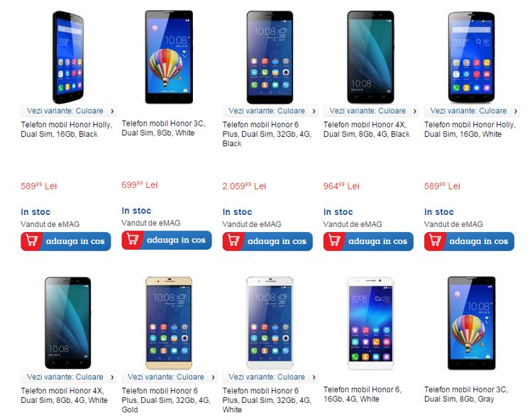 Telefoanele sunt deja disponibile pe eMAG și au prețuri cuprinse între 590 lei pentru Holly și 2080 lei pentru flagship-ul gamei, Honor 6 Plus.