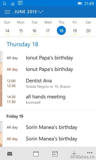 După cum spuneam deja, Outlook și Calendar merg bine, integrate cu mai multe servicii. Notificările funcționează și ele destul de bine.