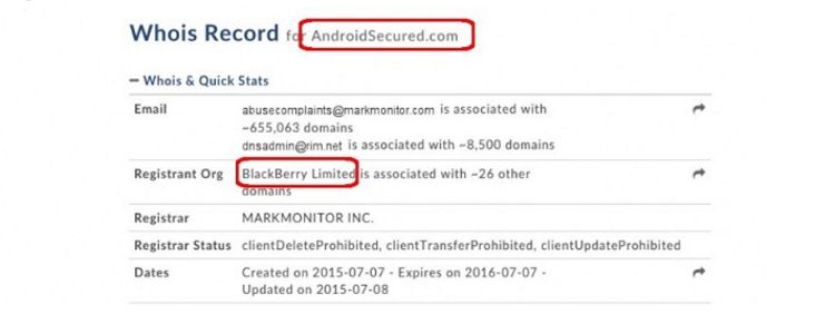 Unul dintre aceste semne evidente este dat de înregistrarea unor domenii cu nume destul de grăitor de către compania canadiană. AndroidSecured.net și AndroidSecured.com sunt două exemple de nume de domeniu pe care BlackBerry le-a înregistrat săptămâna trecută.