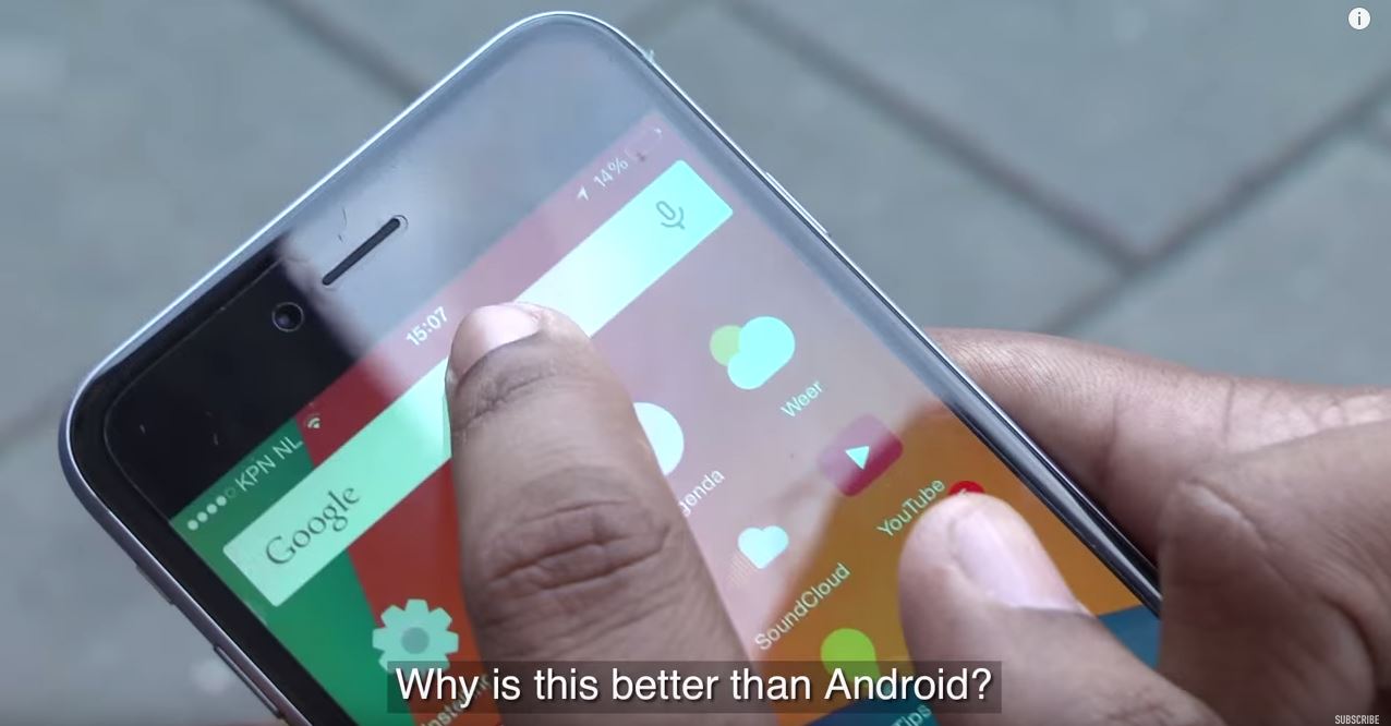 Treaba asta nu poate să nu fie exploatată de niște băieți cu creier și chef de distracție cum sunt cei de la canalul de YouTube Dit Is Normaal. Ei au luat un iPhone 6 pe care au simulat o interfață Android (aș zice că e prea mult spus că au rulat Android) și au arătat-o unor fani Apple drept noul iOS 9. Ce a ieșit vedeți mai jos: