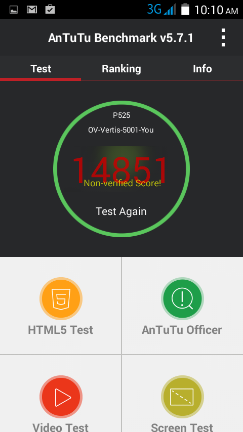 În perioadele în care l-am testat mai intens, acumulatorul a reușit să treacă de trei zile fără încărcare. E drept, am folosit telefonul fără a avea datele pornite, doar cu WiFi-ul pornit. Și cred eu, foarte important în atingerea acestei performanțe a fost faptul că telefonul nu a ieșit din casă, nu s-a mișcat. Am încercat câteva fotografii, însă camera foto este aproape inutilă în interior, am avut și o mică sesiune de gaming care m-a lăsat indecis (jocurile se mișcă greu, însă telefonul nu se încinge), am avut și o tentativă de a rula un benchmark, la care am renunțat însă în primă fază, pentru că nu prea cred în cifre seci. Totuși, am finalizat până la urmă un AnTuTu, care mi-a arătat câteva detalii interesante, pe care le găsiți mai sus, în secțiunea de specificații tehnice. Rezultatul general din AnTuTu Benchmark este surprinzător de mare, după părerea mea, vă las mai jos cu capturile de ecran.