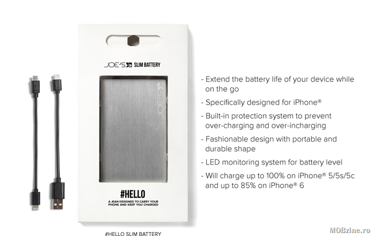 Bateria din dotarea blugilor e una care poate să încarce un iPhone 6 până la 85% și complet modelele 5/5s/5c.