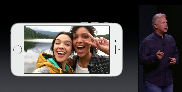 S-a modificat ceva și la camera frontală, Apple venind cu ideea de a folosi ecranul smartphone-ului pe post de bliț. Ei zic că au făcut și ceva modificări la display ca acesta să se poată aprinde mai intens și să dea posibilitatea de a oferi un fel de bliț pentru camera frontală. Și așa selfie-urile să iasă mai bine.