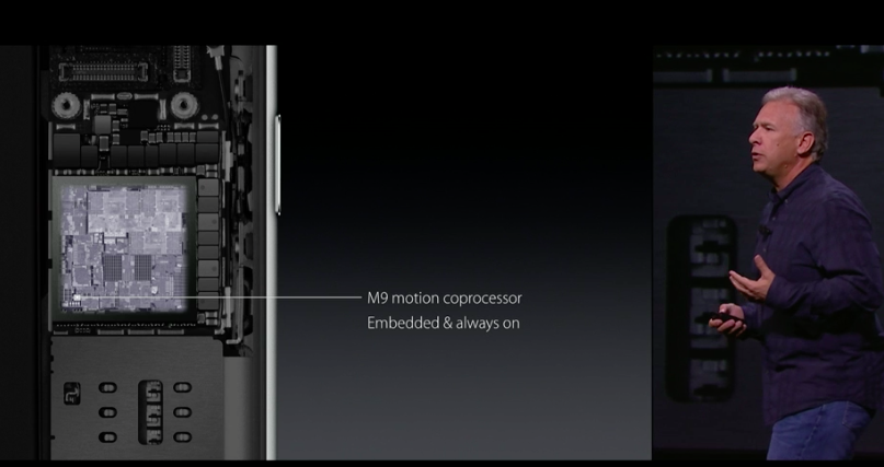 Pentru iPhone 6s și iPhone 6s Plus s-a ales ca senzorul de monitorizare a mișcării să fie mereu pornit, gata de a colecta date. S-a mers pe varianta în care acesta e embedded în coprocesorul M9.