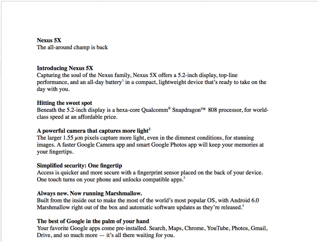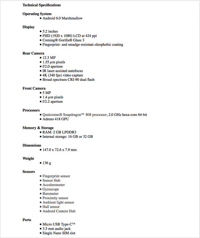 Imaginile de mai sus par a fi niște copii ale unor documente oficiale legate de Nexus 5X. Vedem display-ul de 5.2 inci Full HD LCD (424 ppi densitate) cu Gorilla Glass 3 cu o procesor Qualcomm Snapdragon 808 hexa-core pe 64 de biți, doar 2 GB RAM și o cameră de 12.3 MP cu f/2.0 și suport de înregistrare video 4K și un senzor de amprentă.